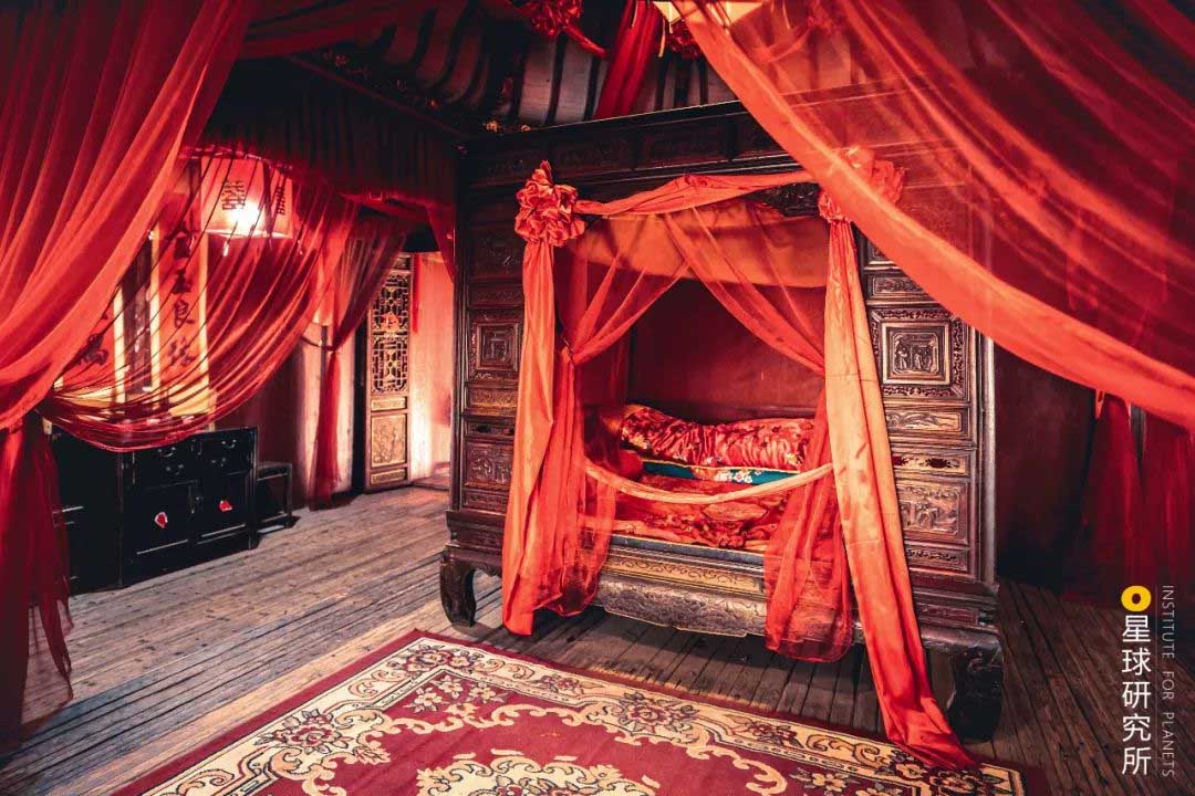 (婺源篁嶺民居中的二樓臥室,被用作婚房,徽州民居其實(shí)經(jīng)歷了一個(gè)漫長的形成過程,明代的民居二樓為廳堂,稱“樓上廳”,更多的保留了干欄式建筑的特色,清代的主要廳堂則由二樓轉(zhuǎn)移到一樓,攝影師@鄭哲文)
