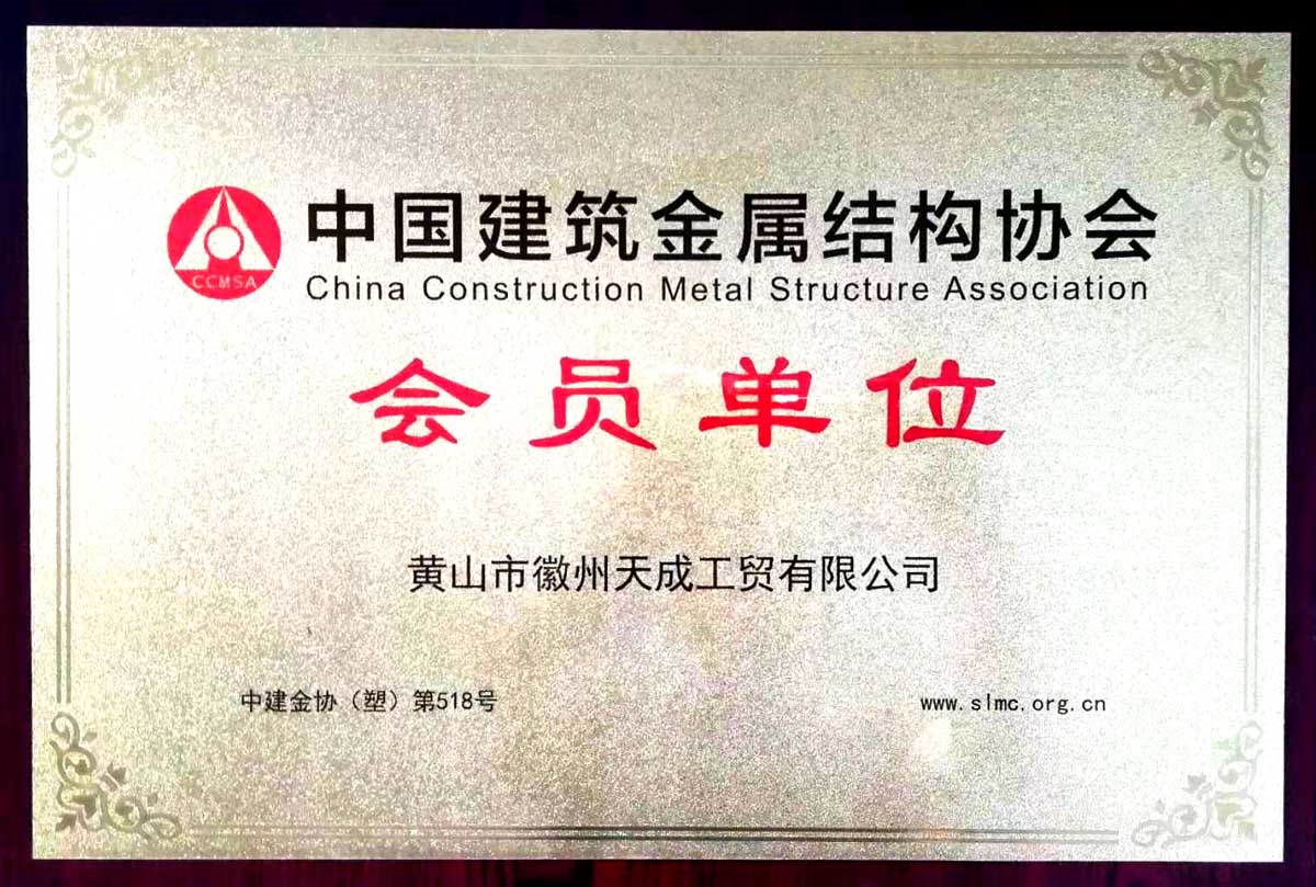 經(jīng)協(xié)會(huì)批準(zhǔn),黃山市徽州天成工貿(mào)有限公司正式加入中國(guó)建筑金屬結(jié)構(gòu)協(xié)會(huì)(塑鋼門窗),成為中國(guó)建筑金屬結(jié)構(gòu)協(xié)會(huì)(塑鋼門窗)會(huì)員。